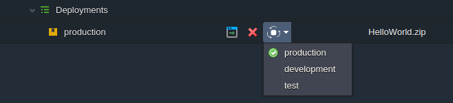 You can effortlessly switch between the Ruby deployment types by using the drop-down list next to your application (as depicted in the image below).