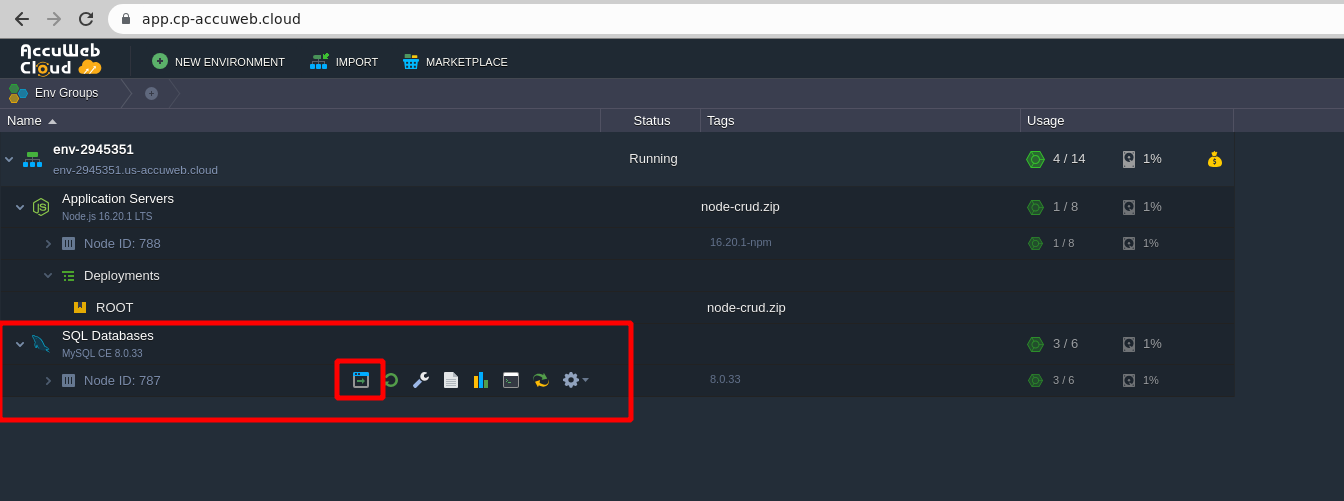 - Note: You can obtain the username and password from the email received from AccuWeb.cloud while creating the environment.