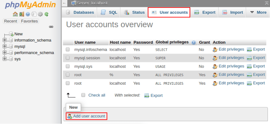 2. Sign in to the admin panel using the provided credentials from the relevant email. Navigate to the User Accounts section and select the Add user account link.