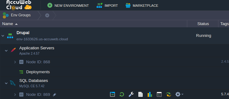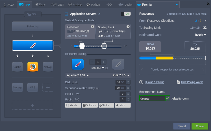 Note: Please review the Drupal installation prerequisites before configuring your application topology. For instance, it is advisable to have PHP 7.2 or higher.