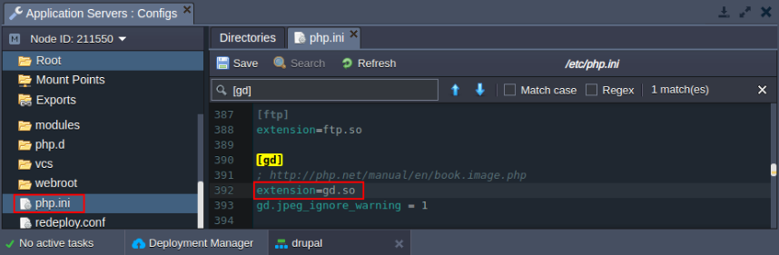 - To activate the extensions, remove the semicolons at the beginning of the lines for extension=gd.so and zend_extension=/usr/lib64/php/modules/opcache.so.
