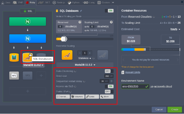 With Accuweb.Cloud, you can easily scale up and down your Ruby applications. In sudden spikes, establishing a maximum scaling limit for each container is possible, ensuring resources are always accessible.