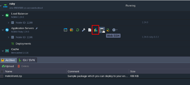 - Deploy your Ruby apps with ease using application archives or remote VCS repositories.