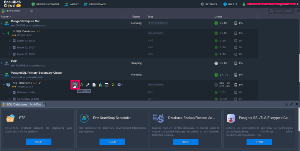 Deploy and host the PostgreSQL Cluster database in just a few minutes with the one-click installation.