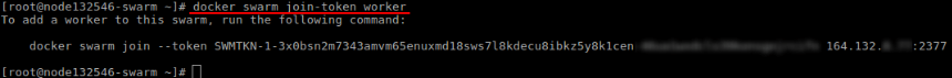 It's essential to locate the Join Token of the target Docker Swarm and its Manager node's Host IP (external address) to establish a connection to a swarm. These values should be provided within the Engine installation framework. In this context, the initial one can be obtained by running the relevant command on your Swarm Manager node:
