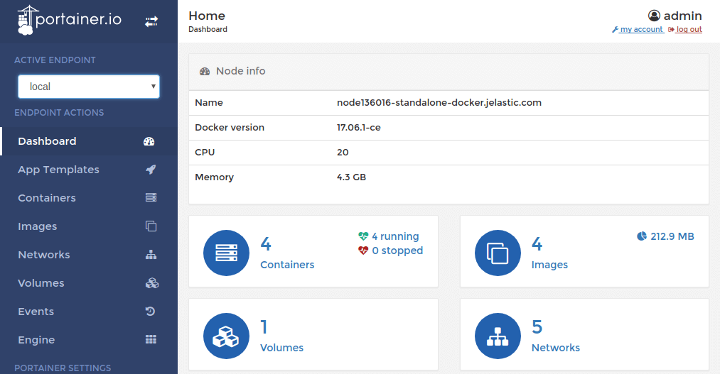 Choosing the clean installation option creates an Engine instance solely containing a running Docker daemon (i.e., void of deployed applications or additional customizations). In this context, adhering to the UI-centric application deployment approach, the Platform offers the choice to include this node with an integrated Portainer. Portainer is a dedicated graphical user interface (GUI) panel that empowers users to manage their Docker-based environments and specific instances through a user-friendly web interface.